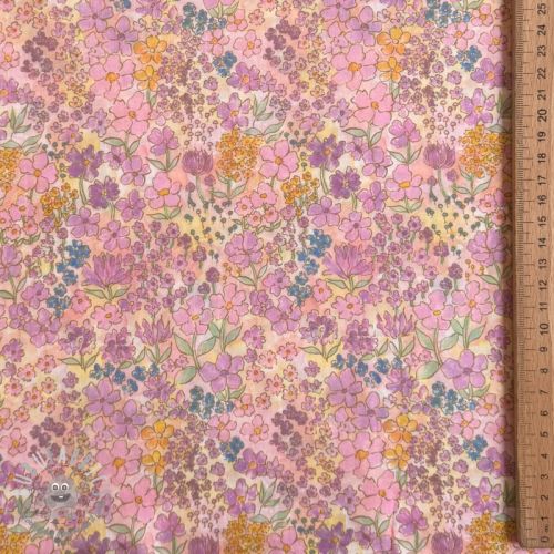 Tessuto di cotone VOILE Small hayppy flowers digital print