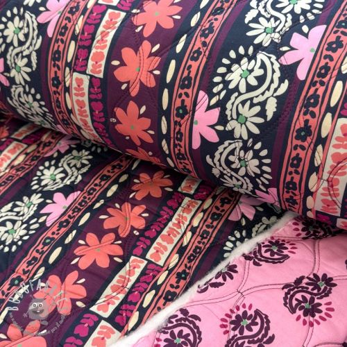 Tessuto di cotone VOILE STEPPED Daria flower aubergine digital print