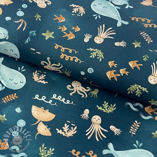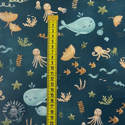 Tessuto di cotone Whales petrol digital print