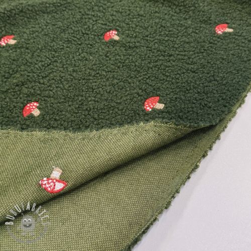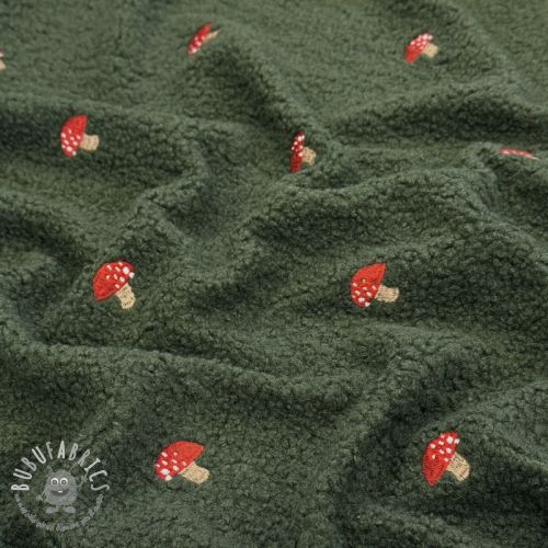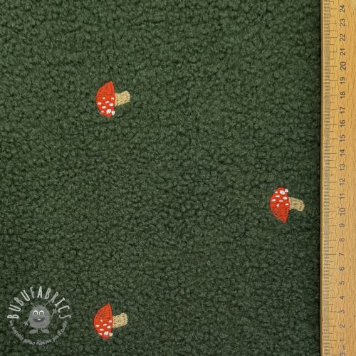 Tessuto per cappotti EMBROIDERY Little mushrooms green