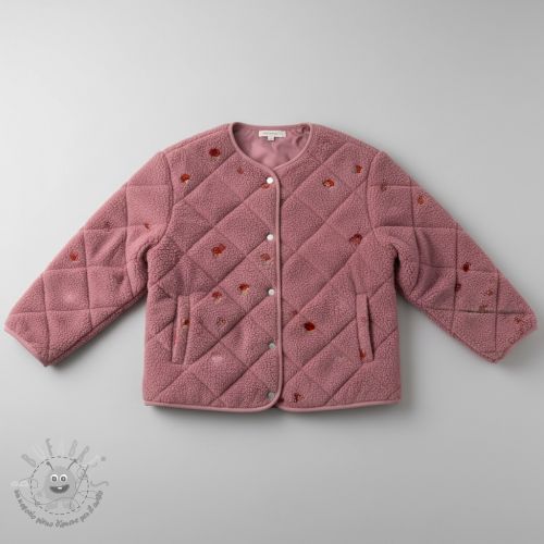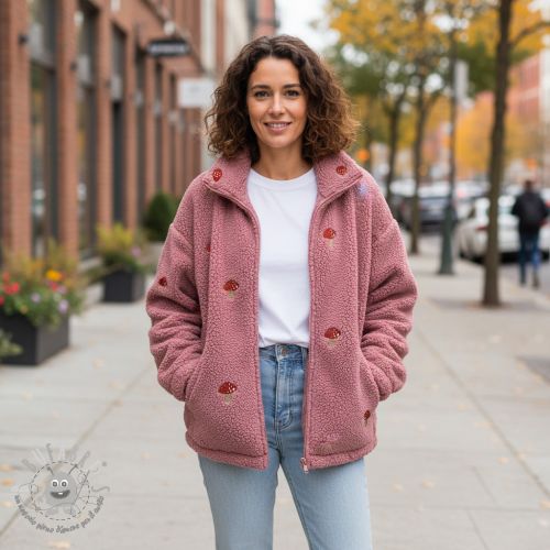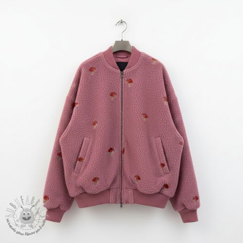 Tessuto per cappotti EMBROIDERY Little mushrooms old pink