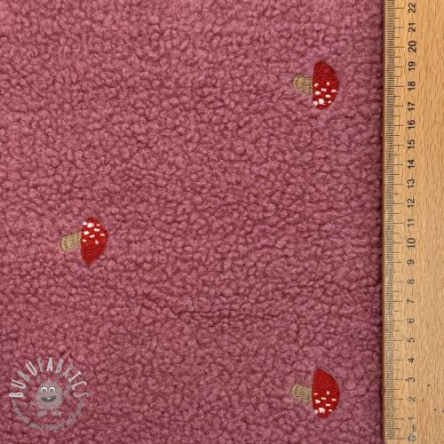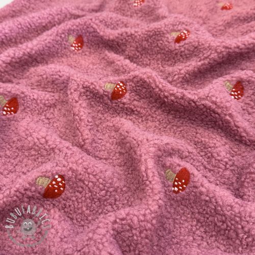 Tessuto per cappotti EMBROIDERY Little mushrooms pink