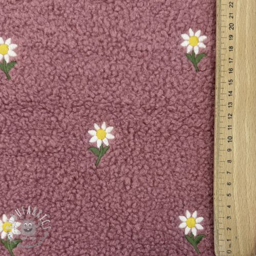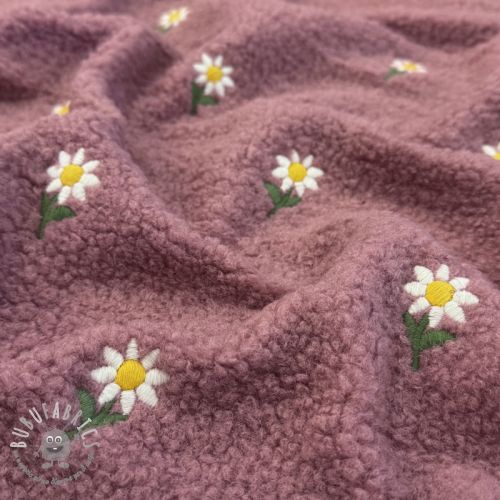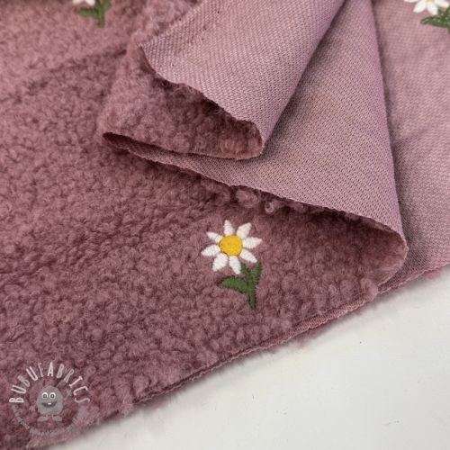 Tessuto per cappotti TEDDY EMBROIDERY Flowers old pink
