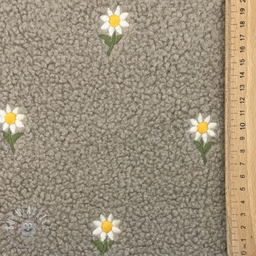 Tessuto per cappotti TEDDY EMBROIDERY Flowers pebble