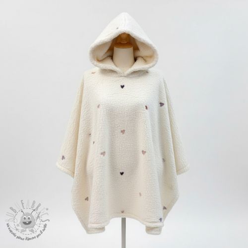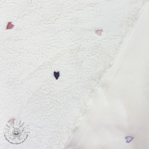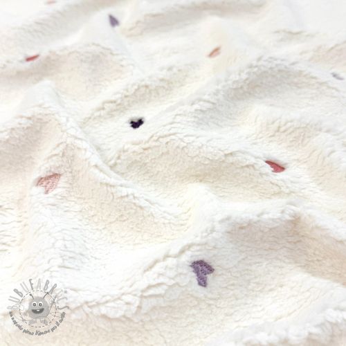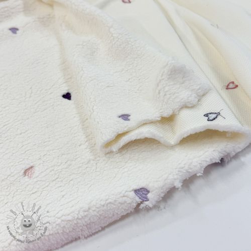 Tessuto per cappotti TEDDY EMBROIDERY Hearts ecru