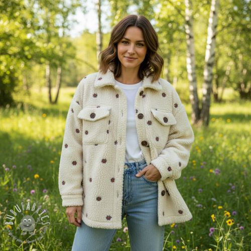 Tessuto per cappotti TEDDY EMBROIDERY Mini ecru