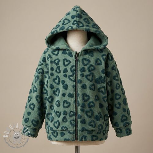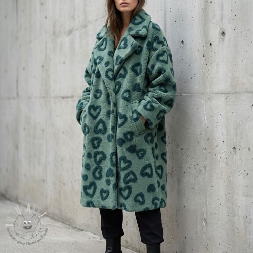 Tessuto per cappotti TEDDY Hearts old green