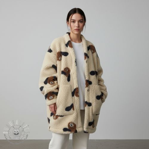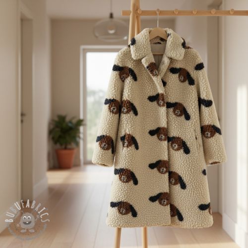 Tessuto per cappotti TEDDY JACQUARD Dogs brown
