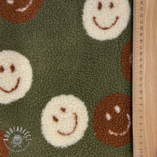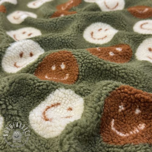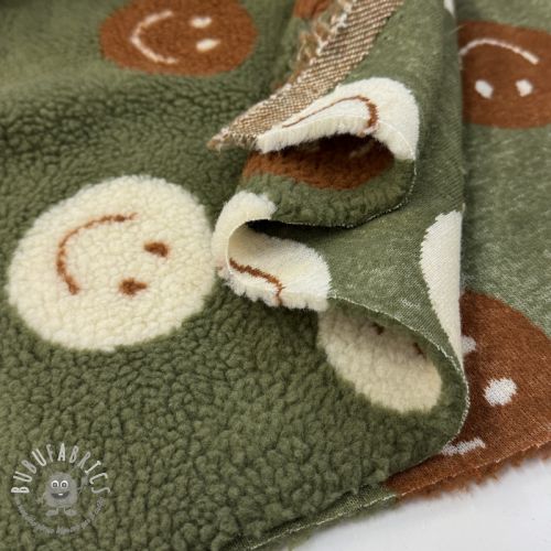 Tessuto per cappotti TEDDY JACQUARD Happy faces green