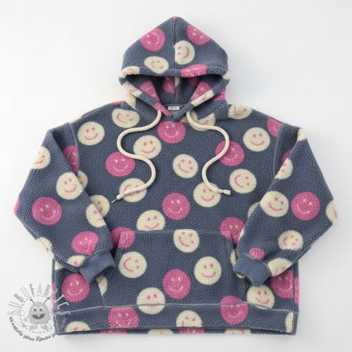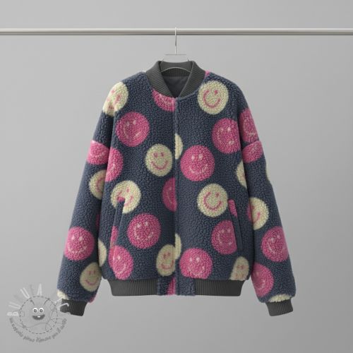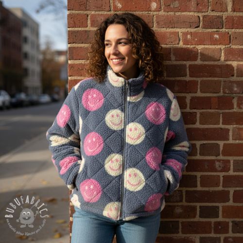 Tessuto per cappotti TEDDY JACQUARD Happy faces jeans