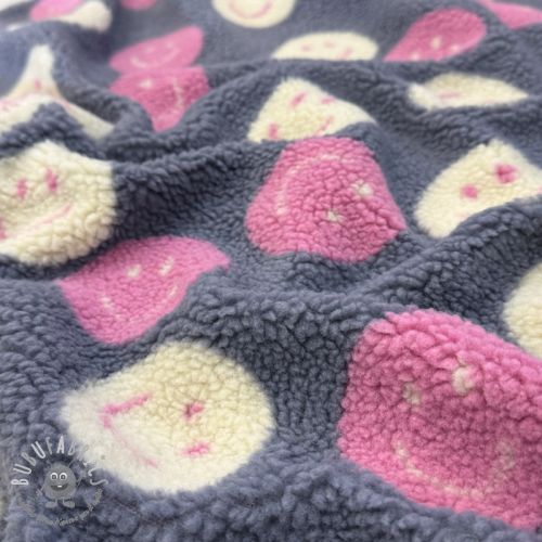 Tessuto per cappotti TEDDY JACQUARD Happy faces jeans