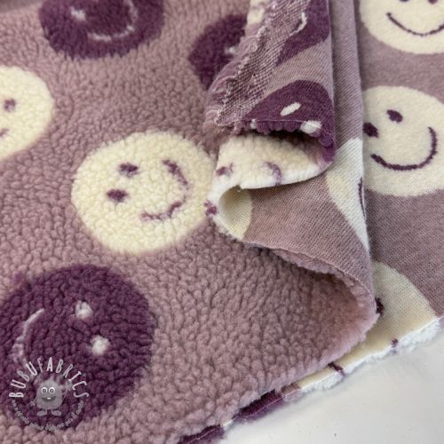 Tessuto per cappotti TEDDY JACQUARD Happy faces mauve