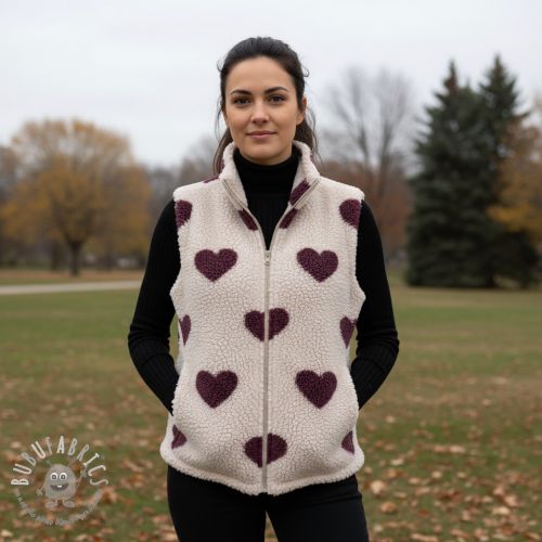 Tessuto per cappotti TEDDY JACQUARD Hearts rouge