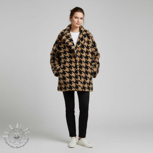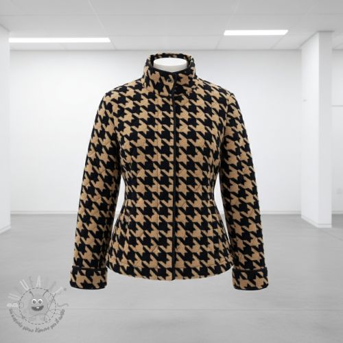 Tessuto per cappotti TEDDY JACQUARD PIED DE POULE camel