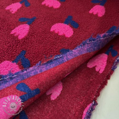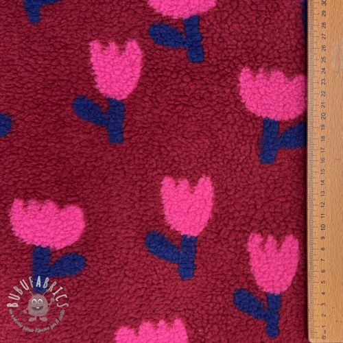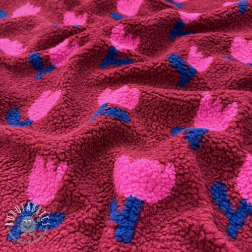 Tessuto per cappotti TEDDY JACQUARD Tulips dark red