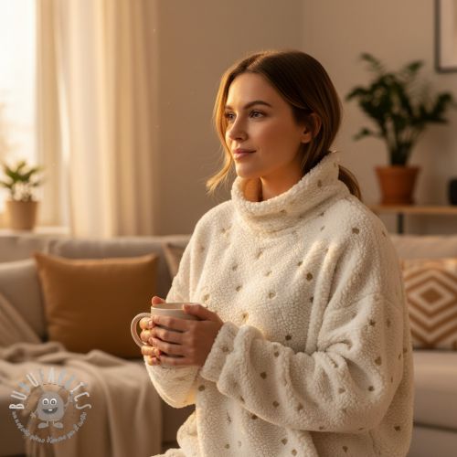 Tessuto per cappotti TEDDY Tossed hearts gold