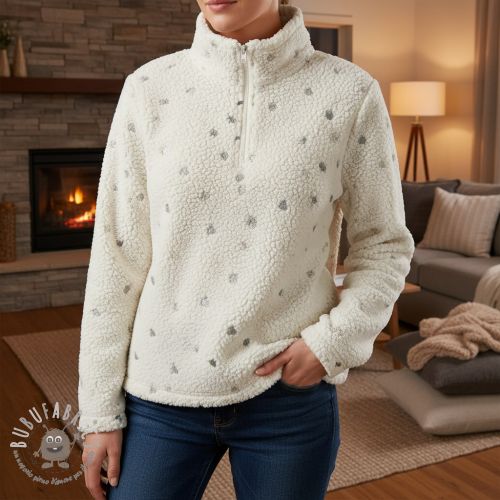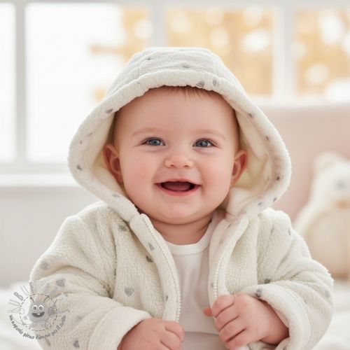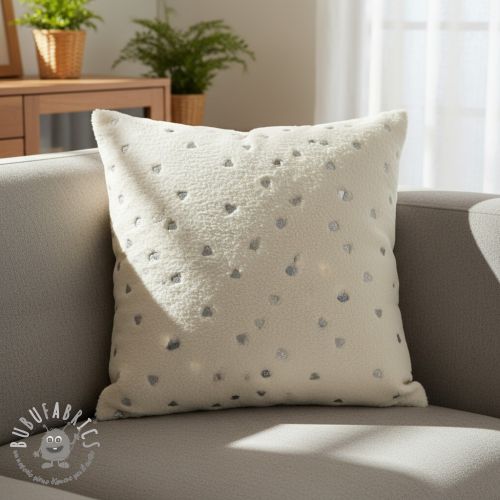 Tessuto per cappotti TEDDY Tossed hearts silver