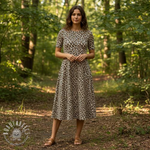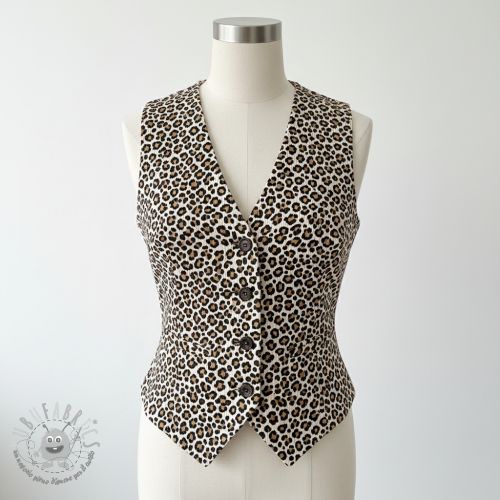Velluto a coste STRETCH Little Leopard sand