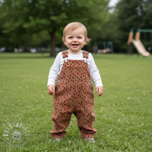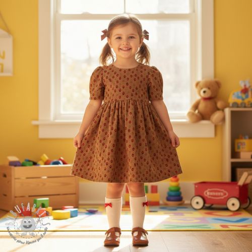 Velluto a coste STRETCH Little strawberries taupe