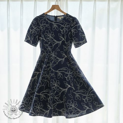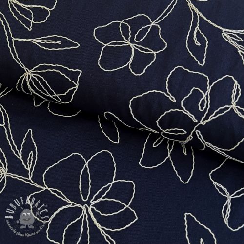 Viscosa con lino EMBROIDERY Flower Danielle navy