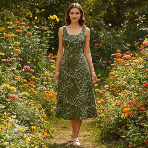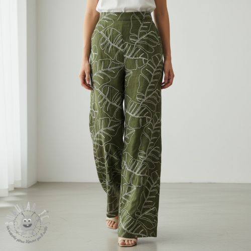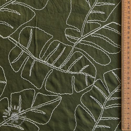 Viscosa con lino EMBROIDERY Leaves forest green