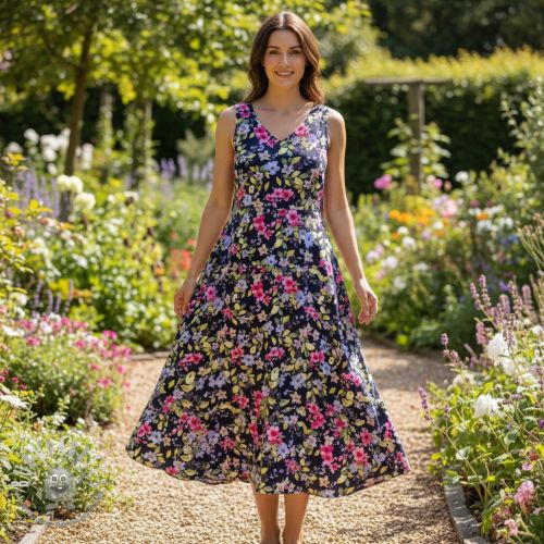 Viscosa RADIANCE Flower Uma navy digital print