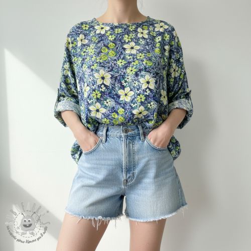 Viscosa SATIN Blue flowers digital print