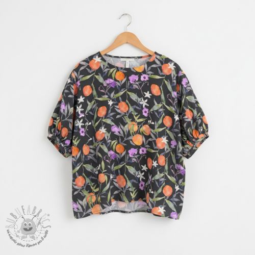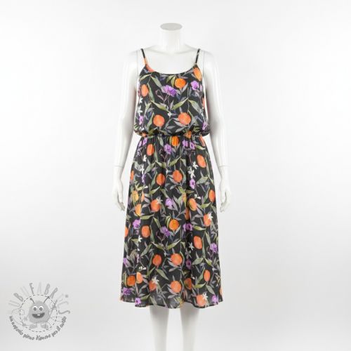 Viscosa SATIN Leaves and oranges digital print