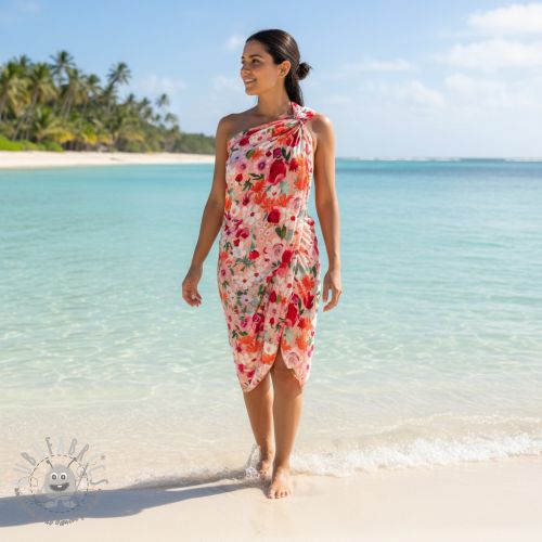 Viscosa SATIN Red flowers digital print